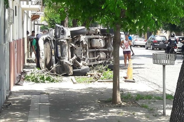 Un violento accidente se produjo este sábado al mediodía en la zona sur de la ciudad, en la intersección de las calles Monseñor Zázpe y Saavedra, frente a la escuela Normal “San Martín”. Allí colisionaron un Fiat Palio que circulaba por Zázpe y una camioneta de la Policía que venía por Saavedra. De acuerdo al relato policial, el patrullero venía con sirenas y balizas encendidas y se dirigía al barrio Centenario por un llamado del servicio 911. Al llegar al cruce de calles se produjo la colisión por la cual la camioneta terminó volcada sobre la vereda, en tanto que el auto sufrió daños en la parte frontal. Personal de los servicios de emergencias atendieron a los involucrados en el accidente aunque afortunadamente no hubo heridos de gravedad.