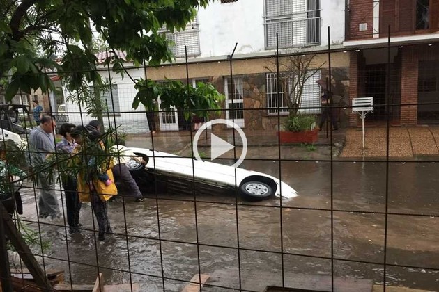 Vecinos del lugar asistieron a los damnificados y otros fotografiaron la secuencia hasta que el vehículo terminó totalmente tapado por el agua.