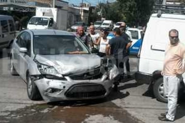 Un accidente de consideración se produjo en horas del mediodía en la intersección de Avenida Galicia y Rivadavia. En esa esquina funciona una sucursal del Banco Santa Fe.