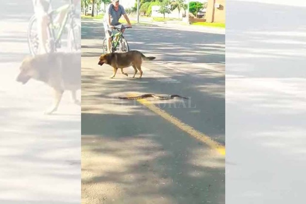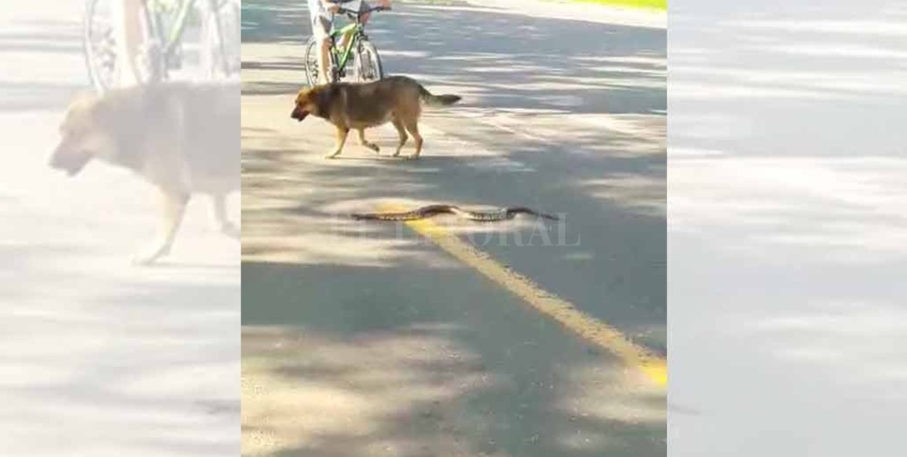 Como se ve en el video, la serpiente se encontraba sobre el asfalto y se movía de manera asustadiza, sobre todo ante la presencia de un perro y personas que ocasionalmente circulaban por allí.