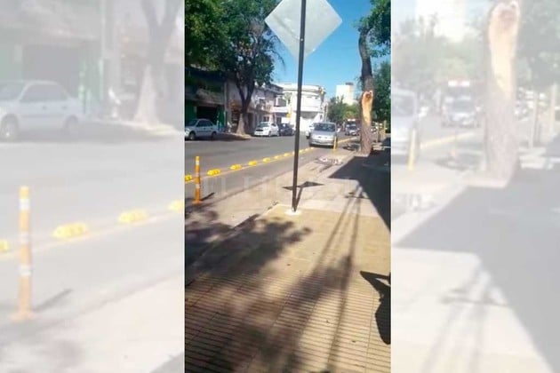 “Mitad dentro, mitad fuera de la ciclovía”, dijo quien envió las imágenes. El reclamo de ciclistas se repite.