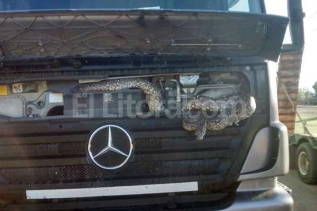 Grande fue la sorpresa de un camionero que en Franck este miércoles por la mañana tuvo que verselas con una boa tipo "curiyú" que intrusó en la noche en el motor de su camión.
