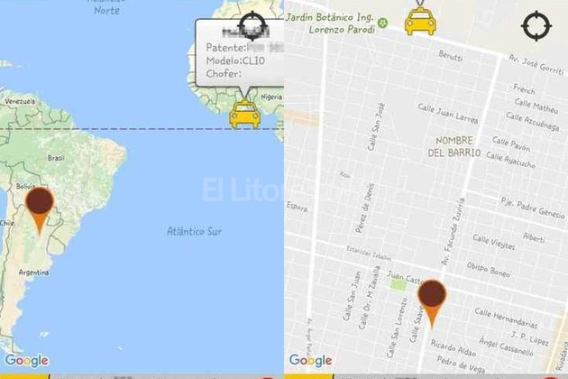 Una lectora envió las capturas de pantalla de su teléfono celular al WhatsApp de El Litoral (342-6305344) contando que pidió un taxi a través de una aplicación y le sucedió algo inesperado: el coche seleccionado aparecía del otro lado del Océano Atlántico, más precisamente en Togo, África.