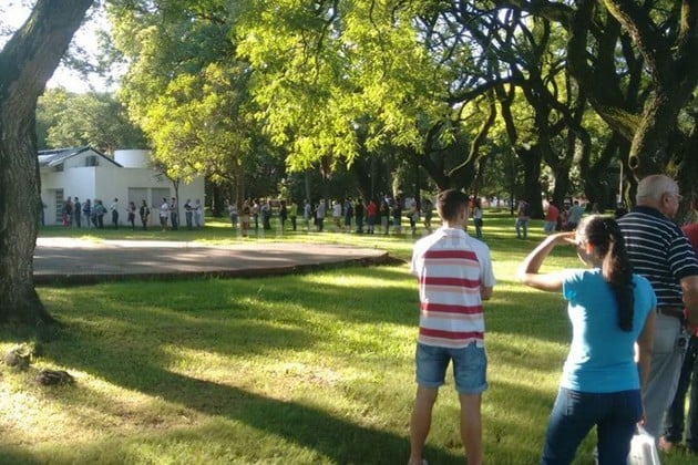 Así luce por estas horas el Centro Municipal de Educación Vial. Los vecinos deben realizar una larga fila para sacar su carnet de conducir.
