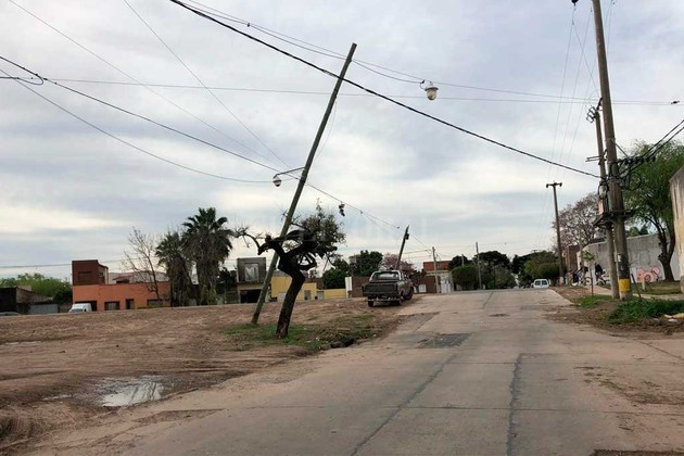 El viento también afectó a dos postes de la vía publica sobre calle Belgrano al 5800, en su intersección con la vía. Así lo manifestó un lector que compartió la fotografía que ilustra la nota.