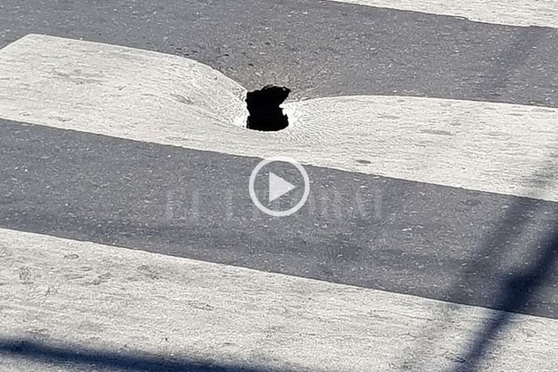 En la intersección de las calles 9 de Julio y Junín comenzó a hundirse el pavimento. Ya hay un pozo pero, como se observa en la imagen enviada a nuestro whatsapp, debajo del asfalto hay un orificio mayor que, con el tránsito fluido que hay en esa zona, seguramente no tardará mucho en quedar expuesto y convertirse en bache, lo que representa un gran peligro, principalmente para motociclistas y ciclistas.
