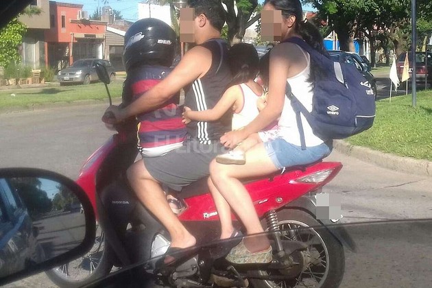 Un periodista ciudadano envió esta foto en la que se ve a cinco personas circulando en una moto. Dos adultos y tres menores de edad (solo uno de los chicos lleva casco). Esto fue este miércoles por la tarde en avenida Galicia y Alberdi. No es la primera vez que a nuestro whatsapp llega una imagen como esta, y siempre surge el mismo planteo respecto de la encrucijada a la que muchas familias deben hacer frente a la hora de trasladarse: usar el transporte público, que es un servicio lento, malo y caro, o correr un riesgo enorme y poner en peligro la vida de los más chicos cuando se suben todos a la moto para llegar más rápido a destino y a un costo mucho más bajo. En algunos casos el bolsillo no permite que vayan todos en colectivo, pero ¿se justifica asumir un riesgo tan grande en las peligrosas calles de Santa Fe?