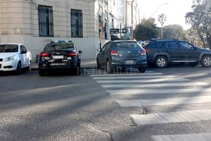 Así estacionaron este auto en el microcentro santafesino, en la intersección de calle Primera Junta y Rivadavia, casi en la puerta misma de la Seccional Primera de la Policía. Eran las 10 de la mañana del miércoles cuando un periodista ciudadano tomó la imagen y la envió a nuestro whatsapp. El auto fue dejado ocupando la senda peatonal como si fuera una dársena para estacionar, con total impunidad, ocupando el espacio que, a esa hora y lugar, se vuelve imprescindible para los peatones debido al intenso tránsito.