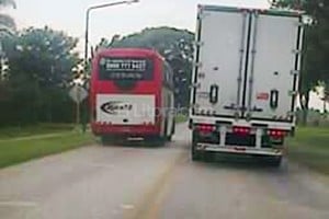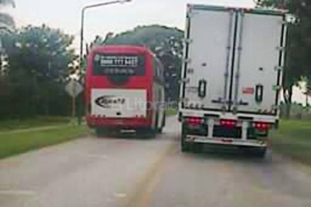 "Peligro al volante" refiere nuestro lector en el envío de la fotografía a nuestro Whatsapp 3426305344. Agrega que la imagen es del viernes 22 de mayo pasado a las 9.40 y que para realizar un sobrepaso prohibido a alta velocidad casi provoca un choque ya que el camión debió disminuir su velocidad para darle paso "porque venian autos de frente".