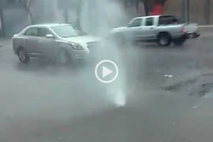 A través del WhatsApp de El Litoral, un lector envió imágenes que grafican a la perfección un “géiser” que se formó en el mencionado sector de la capital provincial.