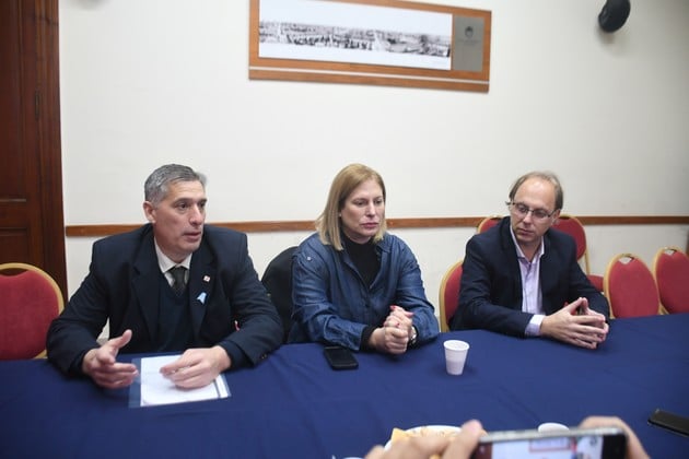 El ministro de Economía, Pablo Olivares, la vicegobernadora Gisela Scaglia y el director de la Agencia de Cooperación Económica y Financiamiento Externo de la Provincia, Gonzalo Saglione. Créditos: Flavio Raina