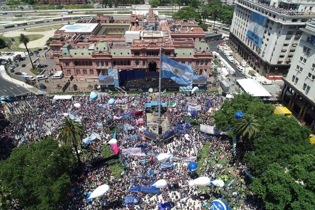 El Litoral se encuentra en la ciudad de Buenos Aires cubriendo la asunción de Alberto Fernández. El nuevo presidente juró ante la Asamblea Legislativa y brindó su primer discurso. En la Plaza de Mayo esperan los miles de militantes para celebrar junto a una grilla de artistas que protagonizarán un festival que se extenderá hasta la noche. Así se ve el emblemático espacio público, desde el drone de El Litoral.