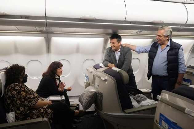 El mandatario viaja acompañado por la primera dama, Fabiola Yáñez; el presidente de la Cámara de Diputados, Sergio Massa; el canciller, Santiago Cafiero; la ministra de Salud, Carla Vizzotti y la portavoz de la Presidencia, Gabriela Cerruti.