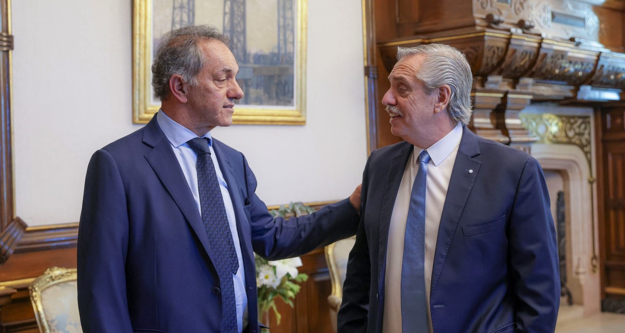 El presidente Alberto Fernández se reunió este viernes al mediodía con el embajador argentino en Brasil, Daniel Scioli, luego de que el ex gobernador bonaerense viera frustradas sus intenciones de competir en las PASO de Unión por la Patria.