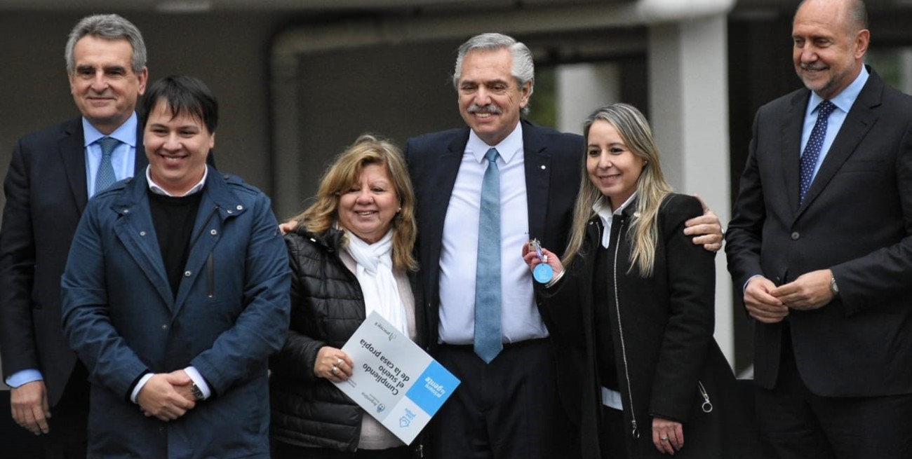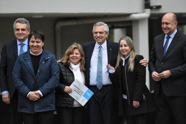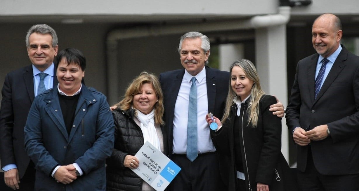 Alberto Fernández encabezó la entrega en la ciudad de Santa Fe de 93 viviendas del desarrollo urbanístico Estación Cambios del Plan Procrear I. Crédito: Luis Cetraro