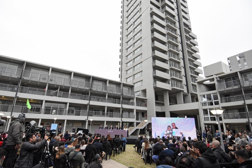 Junto al gobernador Omar Perotti y al intendente capitalino Emilio Jatón, el presidente de la Nación realizó la entrega de llaves a los nuevos adjudicatarios, que hicieron realidad el sueño de la casa propia. Las torres fueron edificadas por la constructora santafesina Capitel S.A.