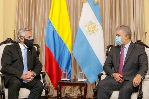 Durante el encuentro, Fernández se comprometió a trabajar conjuntamente en torno a "temas de salud y pandemia" e invitó a Duque a visitar próximamente el país.