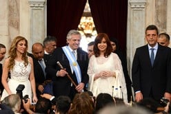 Fernández llegó a las 13.35 a la Casa de Gobierno escoltado por la Fanfarria "Alto Perú" del Regimiento de Granaderos a Caballo, aplaudido y vitoreado por una multitud durante todo el trayecto.