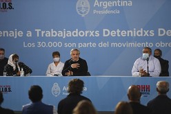 "Todos nosotros somos hijos de todos aquellos que el 17 de octubre de 1945 salieron a la calle a reclamar por un coronel que había tenido el atrevimiento de darle derechos a un sector muy importante del pueblo argentino que nos los tenia: los que trabajaban", sostuvo Fernández en el inicio de su discurso, ante funcionarios de Gobierno, representantes provinciales, intendentes, legisladores y referentes sindicales presentes en el lugar.