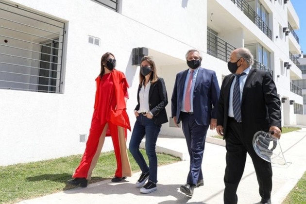 De la entrega de viviendas participaron la ministra de Desarrollo Territorial y Hábitat, María Eugenia Bielsa; la directora ejecutiva de ANSES, Fernanda Raverta y el intendente de Ezeiza, Alejandro Granados.