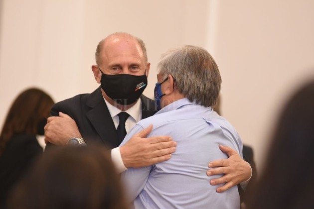 Fue breve el acto de jura de tres ministros del Poder Ejecutivo y el gobernador Omar Perotti se guardó el final del acto para agradecer a los funcionarios por aceptar los cargos, a las familias -apenas los íntimos presentes- por tener que soportar ahora las críticas a la tarde y al saliente ministro de Gestión Pública, Rubén Michlig, presente y sentado en primera fila. El aplauso para el ahora jefe de asesores del gobernador se hizo sentir en la Casa Gris tras el reconocimiento de Perotti a su tarea.