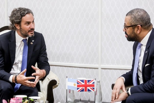 Durante una reunión de cancilleres de los países que integran el G-20 que se desarrolló en Nueva Delhi, India, Cafiero le comunicó a Cleverly la decisión argentina de cancelar el llamado pacto Foradori-Duncan suscrito en 2016 en la embajada británica en Buenos Aires, y además propuso que ambos países mantengan una reunión en la sede de la ONU, en Nueva York, para "reiniciar la discusión por la soberanía" de las islas del Atlántico Sur que el Reino Unido usurpa desde 1833.