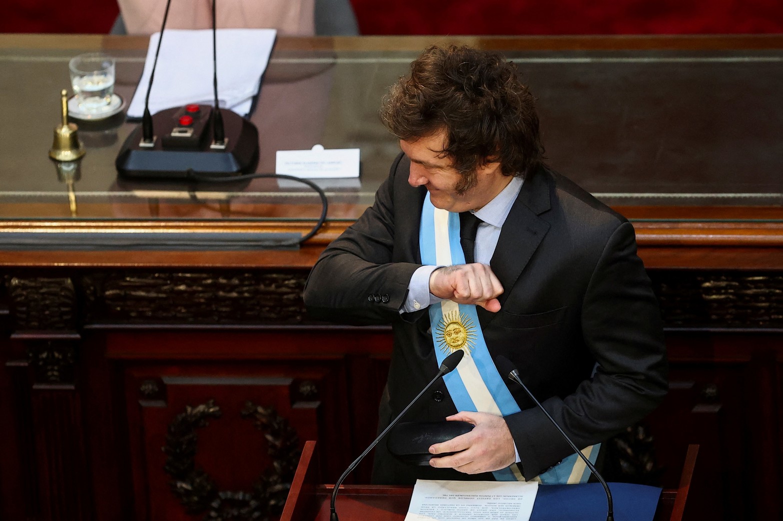 8 / 17 "En concreto, convocó a todos los sectores políticos a firmar el Pacto de Mayo, un acuerdo de diez puntos orientados a resolver los principales problemas del país, y en la provincia de Córdoba, gobernada por un mandatario justicialista y que además durante un tiempo fue uno de sus blancos preferidos, Martín Llaryora" explica Emerio Agretti en su crónica. Foto: Agustin Marcarian