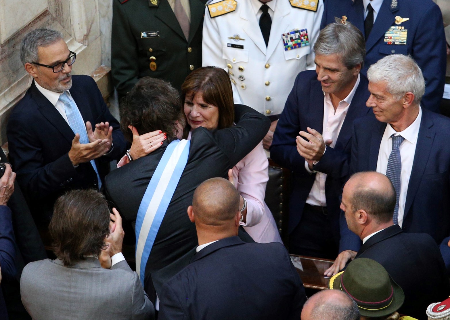 14 / 17 El presidente Javier Milei saluda a la ministra de Seguridad Patricia Bullrich. Foto: Jorge Sánchez - Noticias Argentinas
