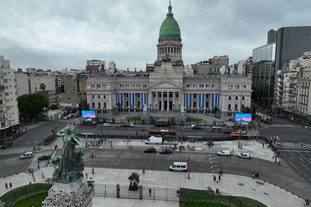 En la fachada ya fueron colocadas una serie de banderas argentinas y hay montadas dos pantallas gigantes para que los ciudadanos que se acerquen puedan seguir lo que ocurra adentro. A su vez, están armando un escenario y que Milei no dará el clásico discurso en el recinto, sino que lo hará en las escalinatas del ingreso al Congreso, sobre la Avenida Entre Ríos.