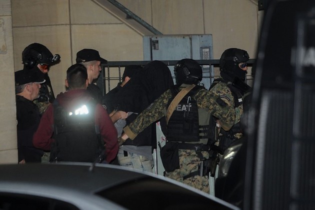 El momento en el que retiraban a Sabag Montiel de Comodoro Py. Crédito: Cristina Sille /Télam