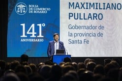 La Bolsa de Comercio de Rosario conmemoró este viernes sus 141 años de vida institucional con un acto en su sede central, encabezado por su Presidente, Miguel Simioni, y que contó con la presencia del Presidente de la Nación, Javier Milei, el Gobernador de Santa Fe, Maximiliano Pullaro, y el Intendente de Rosario, Pablo Javkin.
