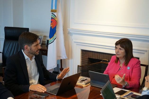 Bullrich recibió previamente en su despacho al gobernador de la provincia de Santa Fe, Maximiliano Pullaro, luego de las balaceras ocurridas en los últimos días en la ciudad de Rosario, en una de las cuales los autores dejaron una amenaza contra el mandatario.