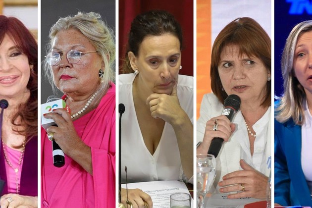 De izquierda a derecha: Cristina Fernández, Elisa Carrió, Gabriela Michetti, Patricia Bullrich y Myriam Bregman.