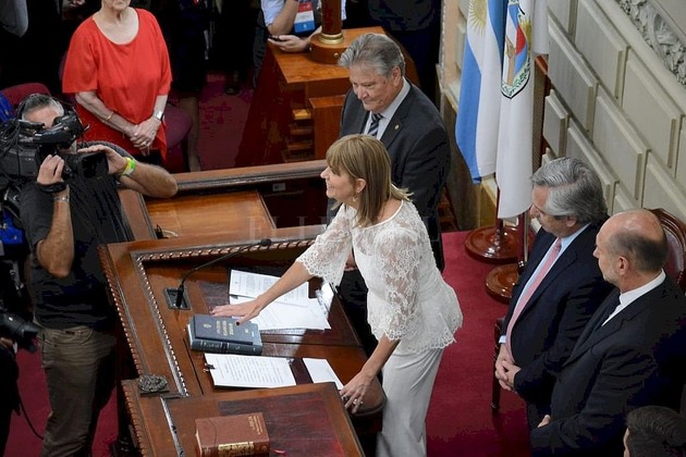 La flamante Vicegobernadora de la provincia, Alejandra Rodenas, tras haber prestado juramento al cargo "por la Patria" y "el honor", saludó efusivamente al Presidente Alberto Fernández -quien visitó Santa Fe exclusivamente para asistir a la ceremonia-, en segundo lugar a Carlos Fascendini y, finalmente, al nuevo Gobernador de la provincia, Omar Perotti, con un fuerte abrazo y un beso que dejó entrever la buena relación de ambos.