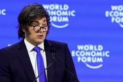 Javier Milei, hablando en la 56ª reunión anual del Foro Económico Mundial en Davos, Suiza. REUTERS/Denis Balibouse