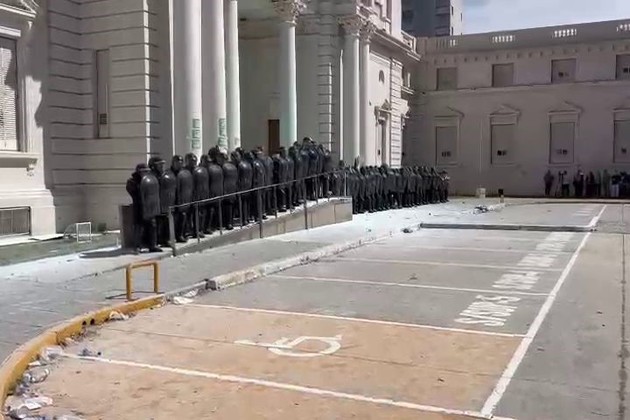 Pero señaló que “sin embargo, ha habido un pequeño grupo de inadaptados, que ha ejercido actos de violencia contra las personas, las instituciones, las instalaciones del edificio de la Legislatura y contra legisladores y personal policial”, detalló el ministro, y apuntó que ante esta situación “las reservas del personal policial que estaban en las inmediaciones se aproximaron rápidamente, e intervinieron ejerciendo acciones de fuerza pública, dentro del protocolo que indican los reglamentos, es decir empleando dispositivos de fuerza no letal”.