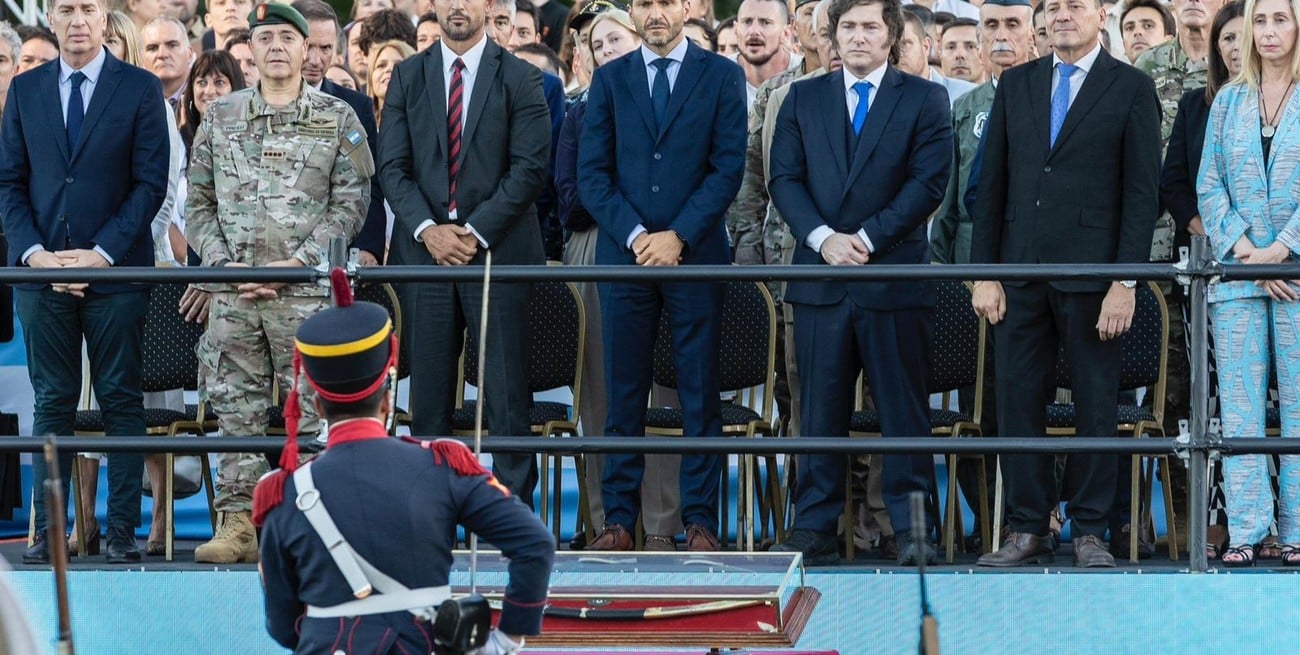 Milei, Pullaro, Martín Menem y Gisela Scaglia presentes en la conmemoración oficial en San Lorenzo.