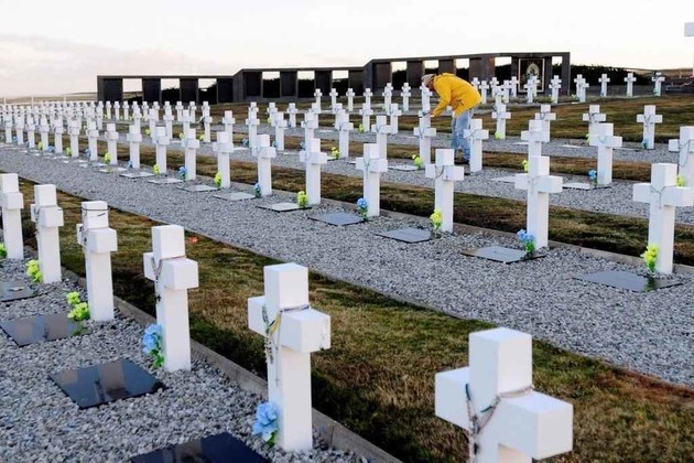 Con una oración por los caídos argentinos e ingleses en la guerra de Malvinas y un llamado a “trabajar por la cultura del encuentro sin divisiones ni odios ni guerras”, concluyó esta mañana la ceremonia religiosa en el cementerio de Darwin de la que participó un contingente de 248 argentinos, la mayoría de ellos familiares de los 90 soldados identificados el año pasado. Los asistentes quienes siguieron la ceremonia sentados en sillas dispuestas frente a las tumbas de sus seres queridos y otros directamente sentados sobre las piedras de la sepultura.