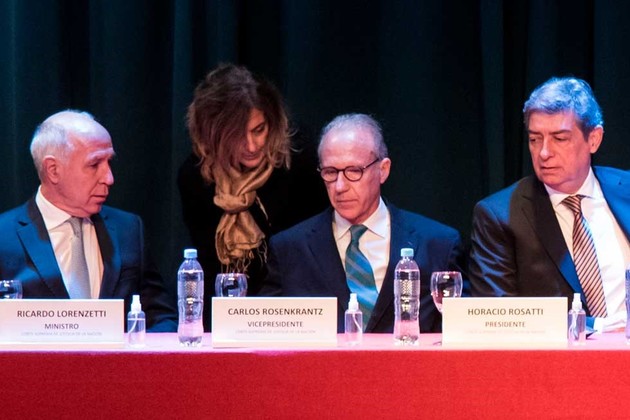 Lorenzetti, Rosenkrantz y Rosatti, la actual conformación de la Corte Suprema. Foto: Marcelo Manera.