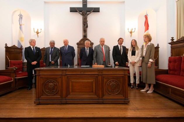 Tras la jura, Baclini y Zabalza se ubicaron junto a Falistocco, Gastaldi, Erbetta, Gutiérrez, Spuler y el procurador Barraguirre. Foto: Guillermo di Salvatore.