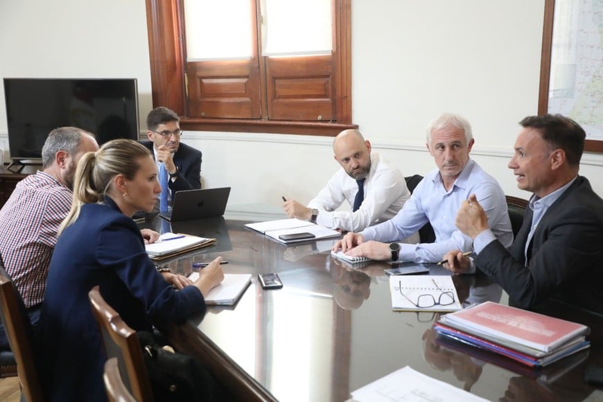 De la reunión participaron los ministros de Desarrollo Productivo; Gustavo Puccini y de Obras Públicas, Lisandro Enrico, junto a funcionarios de Justicia y Seguridad y de Gobierno.