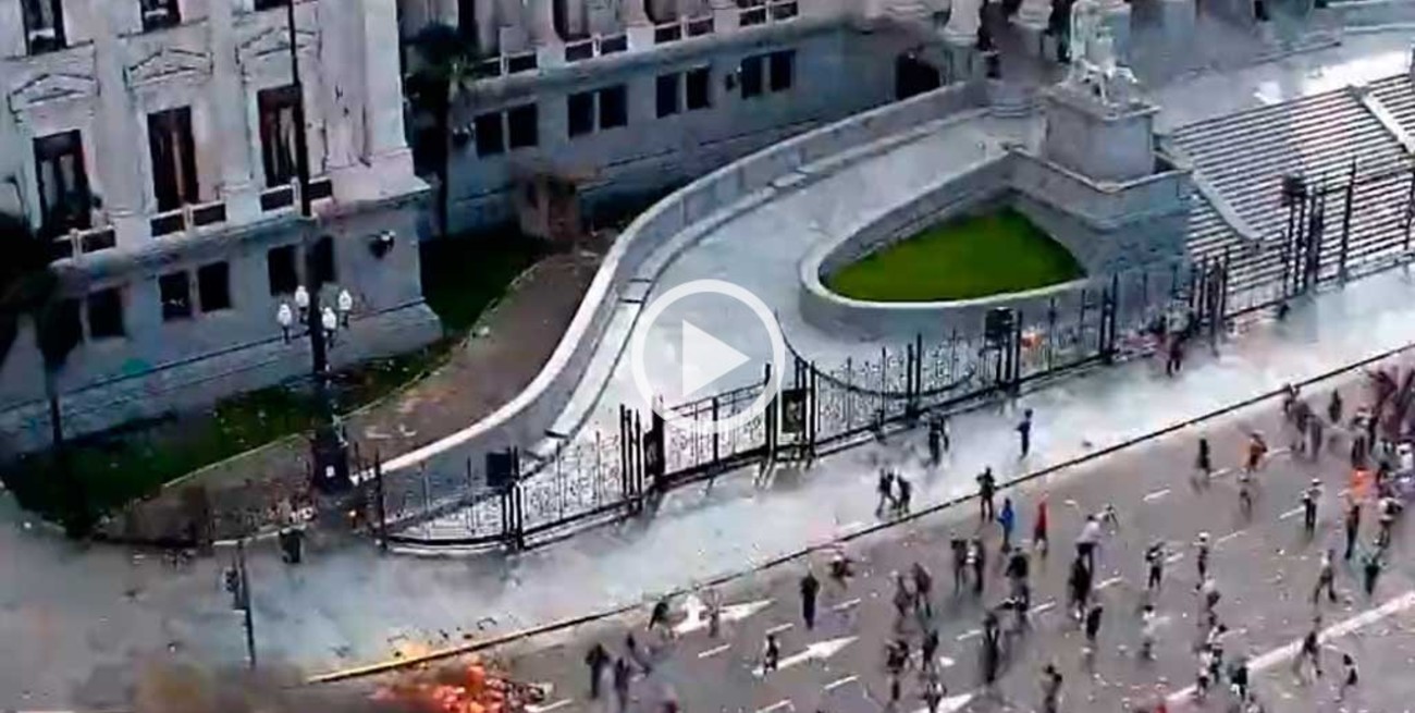 "Las siguientes imágenes corresponden a la cámara de seguridad de la Policía Federal ubicada en la esquina de Entre Ríos e Hipólito Yrigoyen, en el exterior del Senado de la Nación", explica la titular de la Cámara alta junto a imágenes del video en el que se puede ver a varios individuos arrojando elementos contra el edificio y a otros encapuchados rompiendo trozos de vereda.