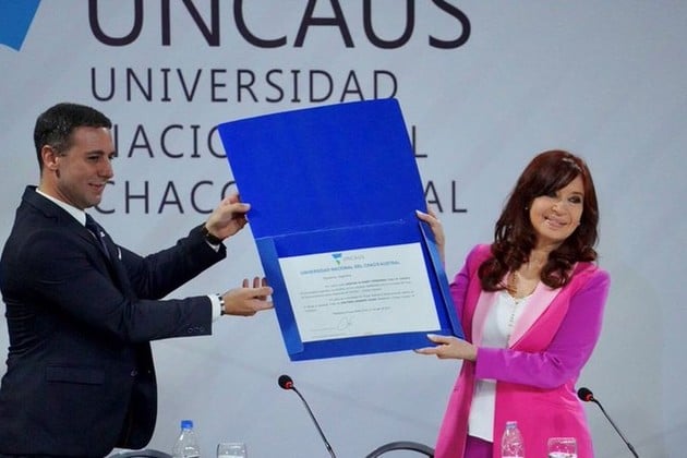 En una conferencia de prensa realizada días atrás, el rector de la Uncaus, Germán Oestmann, y el vicerrector, Manuel García Sola, dijeron que el Consejo Superior de la universidad resolvió por unanimidad condecorar a la expresidenta de la Nación con su máxima distinción académica, el Doctorado Honoris Causa.