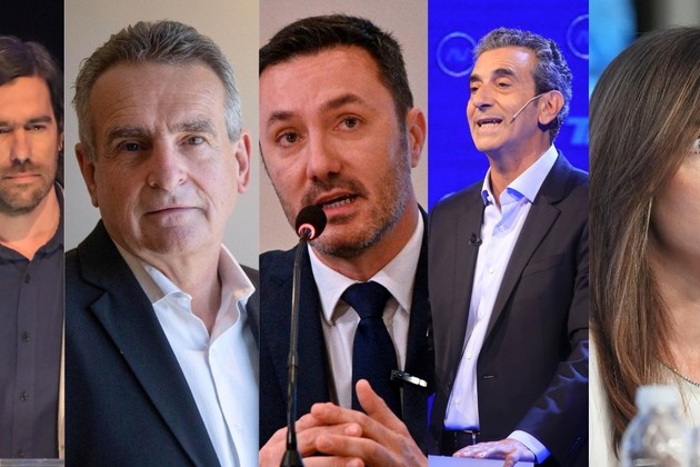 Del Caño, Rossi, Petri, Randazzo y Villarruel, en el orden de sus candidatos a presidente en el otro debate.