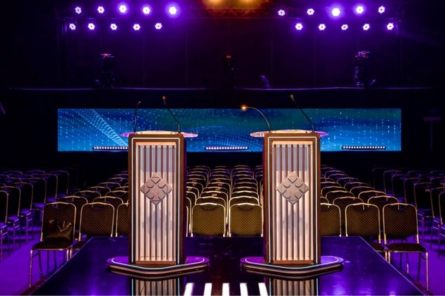Así lucía el Salón de Actos de la Facultad de Derecho de la UBA en la edición 2019 del debate presidencial. Crédito: CNE