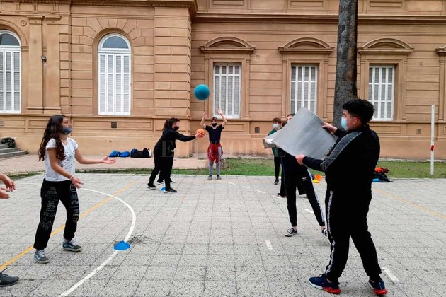 - Puede ser aire libre o en un aula. Cada institución lo resuelve de acuerdo con su situación y habilita sus espacios en función de las condiciones que tenga. Nuestra recomendación es salir del aula; que se utilicen otros espacios como patios, SUM, laboratorios, bibliotecas, porque todos estos espacios están previstos en la escuela para construir conocimiento.