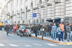 Cientos de jubilados y beneficiarios de planes sociales se concentraron desde la medianoche en la puerta de los bancos, permanecen cerrados desde el 20 de marzo, para cobrar su jubilación.