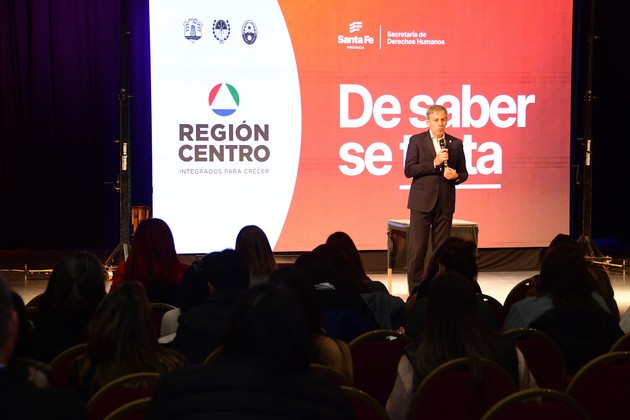El secretario de Derechos Humanos de la provincia Emilio Jatón inauguró la jornada "De saber se trata" el viernes, con participación de integrantes de la Región Centro. Crédito: Guillermo Di Salvatore.