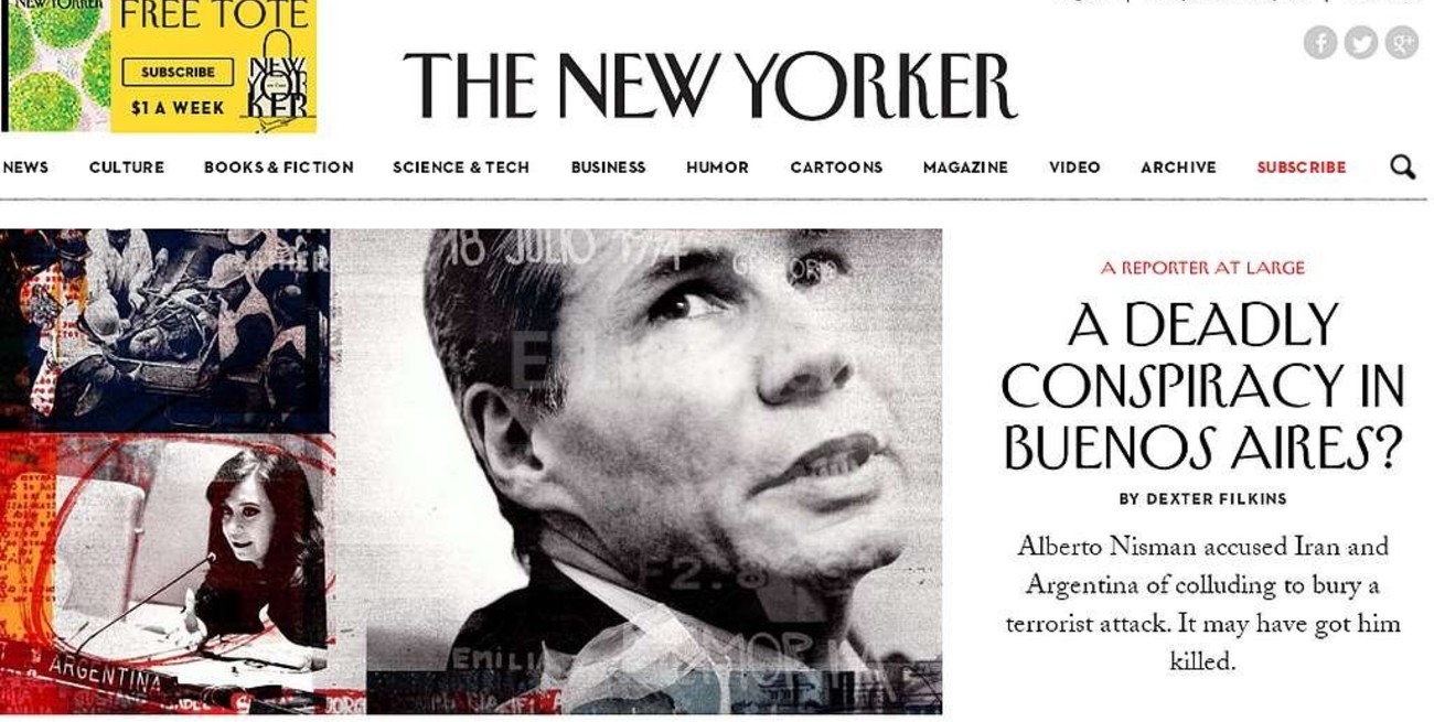 El artículo, con el título "¿Una conspiración mortal en Buenos Aires?", fue escrito por el periodista Dexter Filkins e incluyó entrevistas no sólo a la jefa de Estado, sino a figuras del ámbito judicial y de medios, como así también del entorno de Nisman.