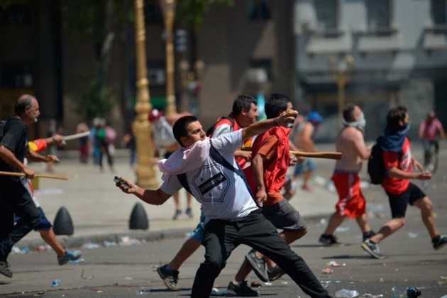 Detectaron a un policía de la Bonaerense tirando piedras frente al Congreso